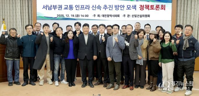 [경기뉴스원/경기뉴스1] | 대전시의회 산업건설위원회는 방진영 의원(더불어민주당, 유성구2)을 좌장으로 19일 대전시의회 소통실에서 '서남부권 교통 인프라 신속 추진 방안 모색 정책토론회'를 개최했다.