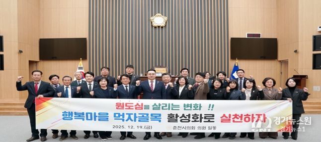 [경기뉴스원/경기뉴스1] | 춘천시의회는 19일 제346회 임시회 제2차 본회의에서 유환규 의원의 대표 발의로 춘천시민의 보행권 보장과 지역경제 회복을 위해 후평동 골목의 환경개선, 중장기 정비계획 및 활성화 계획 수립, 행복마을 먹자골목 조성을 촉구하는 '춘천시 원도심 환경개선 및 행복마을 먹자골목 활성화 결의문'을 채택했다.