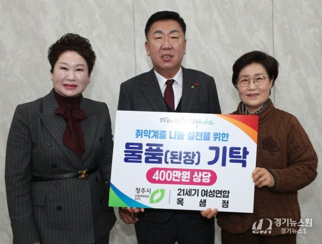 임시청사 직지실에서 진행된 기탁식에는 이범석 청주시장과 유현순 21세기여성연합 청주시지부 회장, 전순자 옥샘정 대표가 참석했다.
