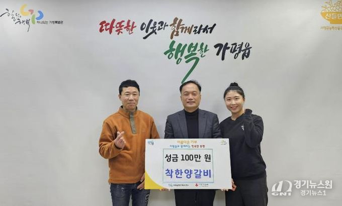 [경기뉴스원/경기뉴스1] | 가평군 가평읍 경춘로 소재 착한양갈비는 지난 19일 행정복지센터를 방문해 이웃돕기 성금 100만 원을 기탁했다.