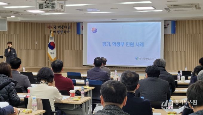 [경기뉴스원/경기뉴스1] | 대구시교육청은 12월 22일 오후 2시부터 동관 7층 대회의실에서 사립 학교의 학사 운영 전반에 대한 이해를 돕고, 안정적이고 책임 있는 학교 운영을 지원하기 위해 사립 고등학교장 49명을 대상으로 ‘학사운영 역량 강화 전달 연수’를 실시한다.