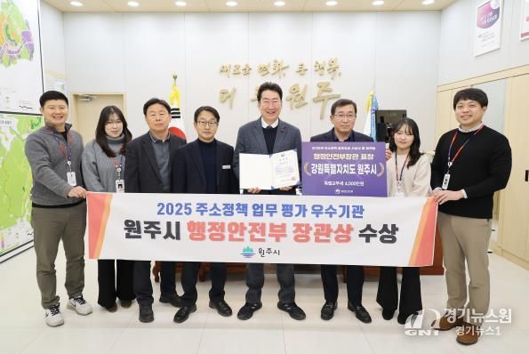 [경기뉴스원/경기뉴스1] | 원주시는 최근 행정안전부가 주관한 ‘2025 주소정책 성과 공유 워크숍’에서 주소정책 업무 평가 우수 기관으로 선정돼, 행정안전부장관 표창을 수상하고 특별교부세 4천만 원을 확보했다.