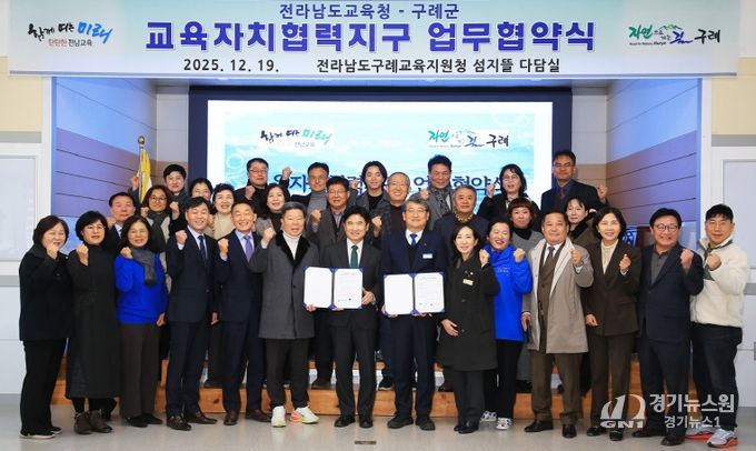 [경기뉴스원/경기뉴스1] | 구례군은 지난 19일, 구례교육지원청 섬지뜰 다담실에서 전라남도교육청, 구례교육지원청, 구례군의회, 학교장, 민관산학위원, 학부모연합회 등 50여명이 참석한 가운데‘구례교육자치협력지구’업무협약을 체결했다고 밝혔다.