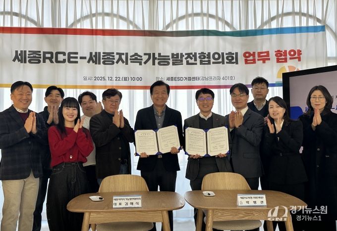 [경기뉴스원/경기뉴스1] | 세종특별자치시교육청은 12월 22일에 ‘세종지속가능발전교육센터’(세종RCE, 강남프라자 401호)에서 세종지속가능발전협의회(상임대표 김해식)와 ‘지속가능발전교육 활성화’를 위한 업무협약을 체결했다.