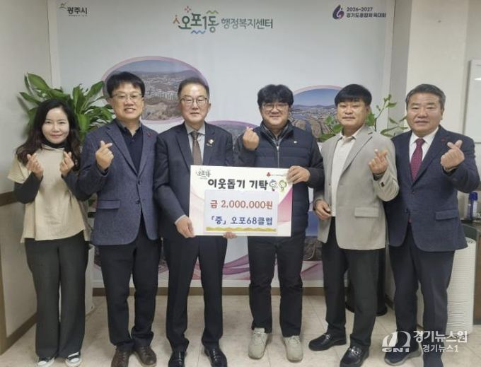 오포68클럽은 지역사랑 봉사 활동을 목적으로 오포 권역 내 1968년생을 주축으로 2004년 결성된 친목 단체다. 이번에 기탁된 성금은 오포 권역 4개 동(오포1·2동, 능평동, 신현동)의 취약계층을 지원하는 데 사용될 예정이다.