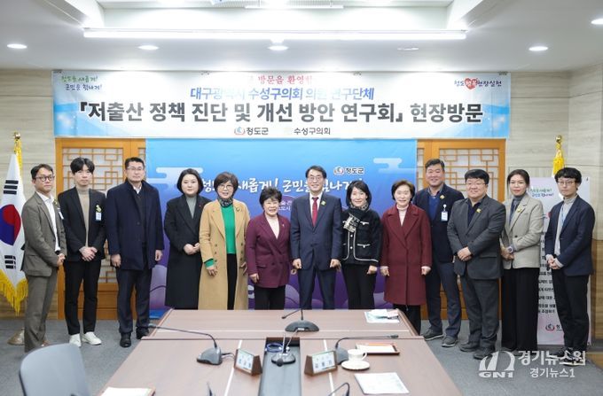 [경기뉴스원/경기뉴스1] | 수성구의회 의원연구단체 '저출산 정책 진단 및 개선 방안 연구회'는 지난 22일 청도군을 방문해 체류형 생활인구 유입과 자생돌봄공동체 기반 저출산 대응 정책을 주제로 세미나 및 현장방문을 실시했다.