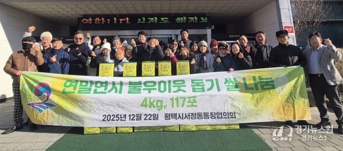 [경기뉴스원/경기뉴스1] | 평택시 서정동 통장협의회는 지난 22일 연말연시를 맞아 어려운 이웃과 취약계층에 대한 사랑 나눔을 실천하고자 연말연시 불우이웃 돕기 쌀 나눔 행사를 진행했다.
