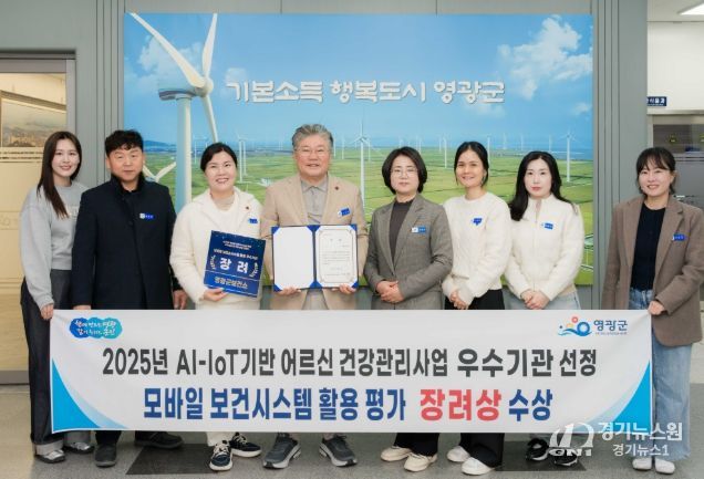 [경기뉴스원/경기뉴스1] | 영광군은 12월 18일 한국사회보장정보원 주관으로 서울PJ호텔에서 열린 2025년 AI-IoT기반 어르신 건강관리사업 모바일 보건소 시스템 활용 평가 성과대회에서 장려상을 수상하며 2년 연속 우수기관으로 선정됐다.