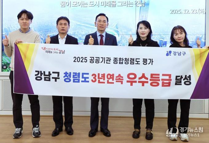 [경기뉴스원/경기뉴스1] | 꿈이 모이는 도시, 미래를 그리는 강남구가 국민권익위원회가 주관한 ‘2025년 공공기관 청렴도 평가’에서 3년 연속 ‘종합청렴도 우수등급’을 받았다.