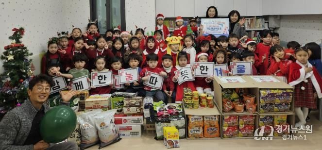 [경기뉴스원/경기뉴스1] | 시립힐스테이트푸르지오수원 어린이집은 지난 23일, 수원시 팔달구 매교동에 연말을 맞아 관내 어려운 이웃들에게 원생들이 십시일반 모은 식료품 꾸러미를 후원했다.