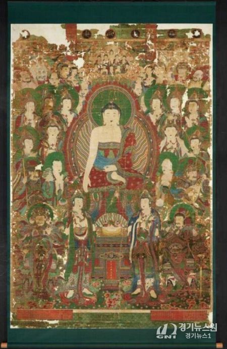 [경기뉴스원/경기뉴스1] | 국가유산청은 현재 전하는 경수연도(장수 축하·기원 잔치인 경수연을 그린 그림) 중 유일한 원본인 '신중엄경수도첩'을 비롯해 '영산회상도', '묘법연화경 권3', '구례 화엄사 동종', '고려 수월관음보살도', '‘영축사’명 영산회상도'까지 총 6건을 국가지정문화유산 보물로 각각 지정했다.