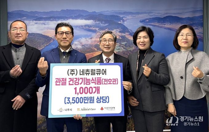 [경기뉴스원/경기뉴스1] | ㈜네츄럴큐어는 산림청 R&D 연구를 통해 전남산림연구원과 공동으로 개발한 관절 건강기능식품 ‘전호관’ 1천 개(3500만 원 상당)를 나주시에 기탁했다.