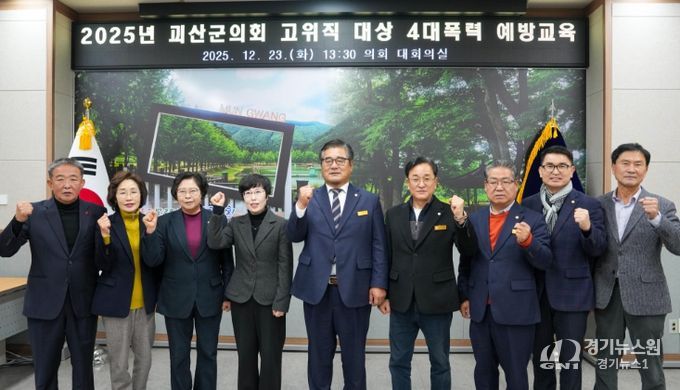 [경기뉴스원/경기뉴스1] | 괴산군의회는 23일 의원들과 5급이상 관리자를 대상으로 4대폭력 예방 통합교육을 실시했다.