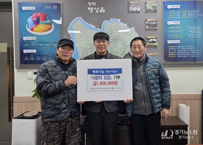 [경기뉴스원/경기뉴스1] | 평택시 팽성읍 안정리에서 활동 중인 팽성민속5일장 번영회는 지난 23일, 지역 상인들이 정성을 모아 마련한 성금 100만 원을 팽성읍 행정복지센터에 전달했다.