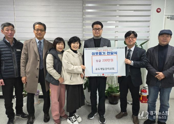 [경기뉴스원/경기뉴스1] | 공도제일감리교회는 12월 24일 지역사회의 어려운 이웃을 돕기 위해 공도읍에 기부금 200만원을 전달했다.