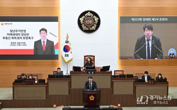 [경기뉴스원/경기뉴스1] | 문성호 서울시의원(국민의힘, 서대문2)이 제333회 서울특별시의회 정례회 마지막 본회의에서 1990년 서대문구 등 서울시에서 발생한 부동산폭력단 오씨 사건을 예로 들며, 범죄행위로 취득한 불법 수익이 환수되지 않고 아직도 버젓이 호화를 누리는 행태를 비판하며, 이로 인해 현재 서울시민의 주거 안정은 거주 불안으로 바뀌었으므로 이를 바로잡아 정당한 부동산 취득권리를 보장해야 함을 주장했다.