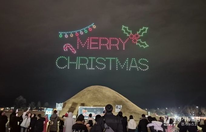 [경기뉴스원/경기뉴스1] | 경주시는 지난 24일 황남동 고분군 일원에서 ‘브레드이발소와 함께하는 크리스마스 드론 아트쇼’를 개최해 시민과 관광객에게 특별한 연말 추억을 선사했다.
