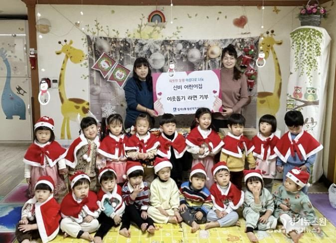 [경기뉴스원/경기뉴스1] | 수원시 장안구 정자3동은 지난 24일 신비어린이집 원아들이 크리스마스를 앞두고 정자3동 행정복지센터를 찾아 라면 26박스를 전달했다고 밝혔다.
