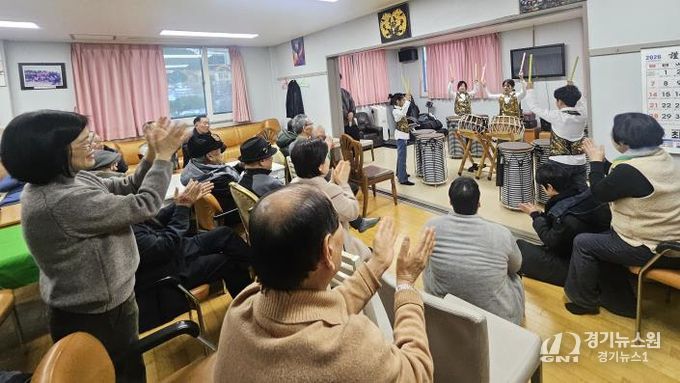 [경기뉴스원/경기뉴스1] | 지난 24일, 수원특례시 영통구 매탄1동은 매탄1동지역사회보장협의체와 함께 현대힐스테이트경로당 자매결연 행사로 The꿈 지역아동센터 아동들이 준비한 난타공연을 선보였다.