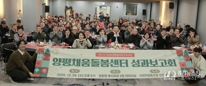[경기뉴스원/경기뉴스1] | 양평군은 지난 24일 청운면 다목적복지회관에서 보건복지부 공모사업으로 추진 중인 ‘사회보장 특별지원구역 사업’ 성과 공유회를 개최했다고 밝혔다.