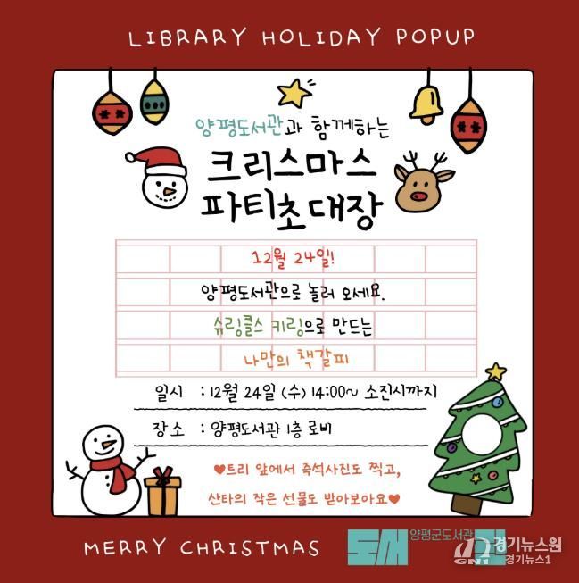이경희 평생학습과장은 “이번 크리스마스 체험행사를 통해 도서관이 지역 주민이 함께 문화를 즐기는 생활문화 공간으로 자리매김하고 있음을 확인했다”며 “앞으로도 다양한 문화 프로그램을 통해 군민의 문화 향유 기회를 지속적으로 확대하겠다”고 말했다.