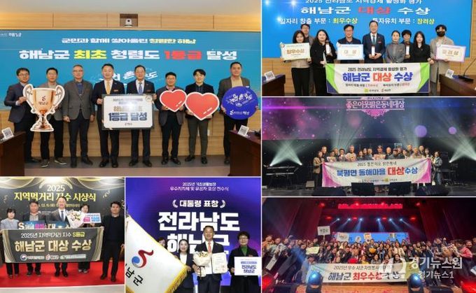 [경기뉴스원/경기뉴스1] | 해남군이 2025년 한 해 동안 총 110건의 기관표창을 수상하며 역대 최다 수상 기록을 달성했다.