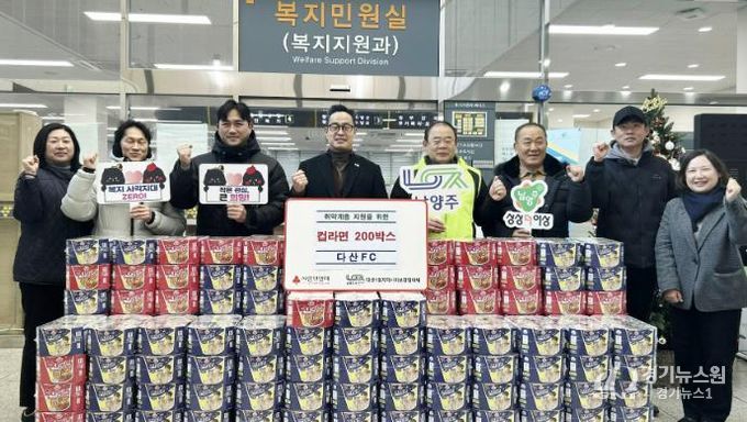 [경기뉴스원/경기뉴스1] | 남양주시는 26일 다산행정복지센터에서 지역 체육단체인 다산 FC와 컵라면 200개 후원 물품 전달식을 가졌다고 밝혔다.