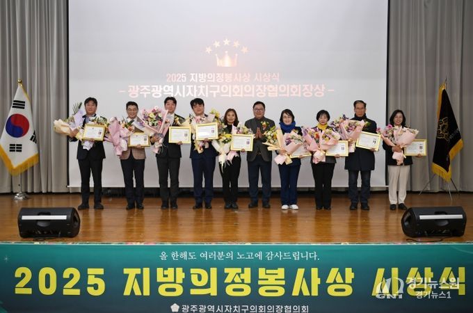 [경기뉴스원/경기뉴스1] | 광주광역시자치구의회의장협의회(회장 김명수)가 26일 광산구청 7층 윤상원홀에서 ‘2025년 하반기 지방의정봉사상’ 시상식을 개최했다.