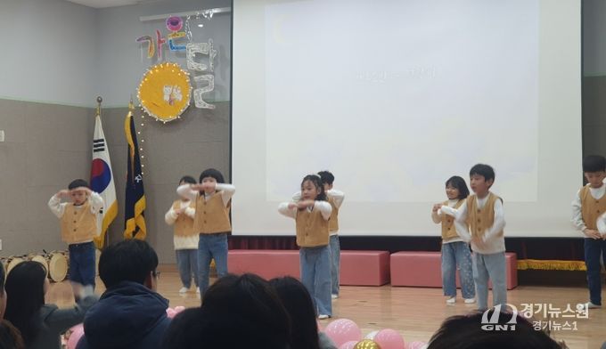 1부에서는 가온1·2반 유아들이 준비한 오카리나 연주와 우리나라 놀이를 주제로 한 놀이 뮤지컬 공연이 펼쳐졌다. 사물놀이 ‘농악’, 소고춤 ‘청개구리 타령’, 전래놀이를 접목한 무대를 통해 유아들은 놀이 속에서 배우고 성장한 경험을 자신감 있게 표현했다.
