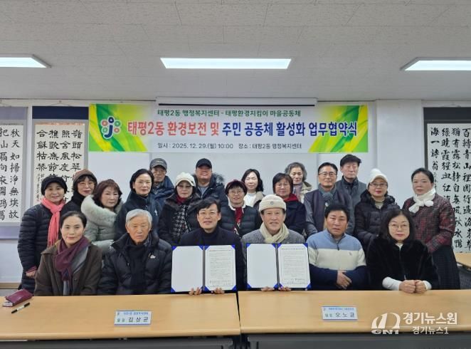 [경기뉴스원/경기뉴스1] | 대전 중구 태평2동은 29일 태평환경지킴이 마을공동체와 지역 환경보전과 주민 공동체 활성화를 위한 업무협약을 체결했다고 밝혔다.