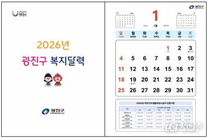 [경기뉴스원/경기뉴스1] | 광진구는 다양한 복지 정보를 수록하여 기초생활수급자가 손쉽게 알 수 있도록 ‘2026년도 복지달력 및 복지지원 안내문’을 제작해 배포한다.