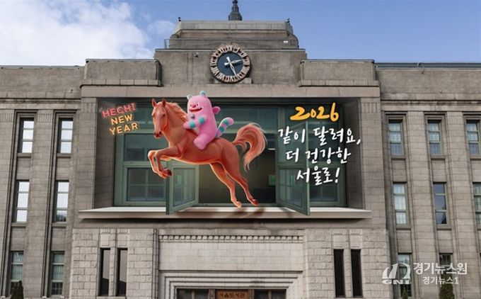 [경기뉴스원/경기뉴스1] | 2026년 1월 1일 서울시가 새해를 맞이하여 서울도서관 외벽 대형 글판인 서울꿈새김판에 “2026 같이 달려요, 더 건강한 서울로!”라는 문구를 새롭게 단장하여 공개한다.