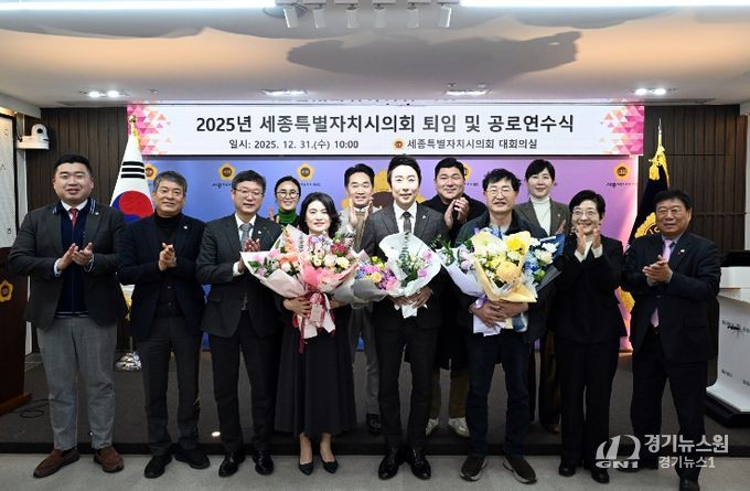 [경기뉴스원/경기뉴스1] | 세종특별자치시의회는 31일 시의회 대회의실에서 퇴임 및 공로연수를 맞는 공직자들의 노고에 감사의 마음을 전하는 2025년 세종시의회 퇴임 및 공로연수식을 개최했다.