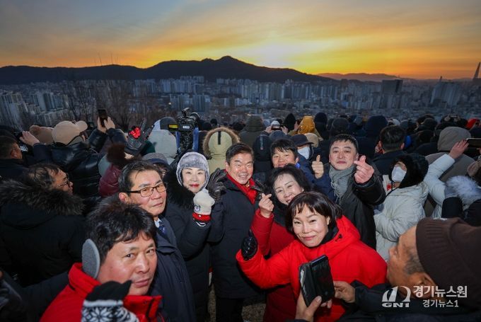 [경기뉴스원/경기뉴스1] | 새해 첫날 새벽, 배봉산 정상에 사람들의 숨이 하얗게 피어올랐다. 서로의 장갑을 고쳐주고, 어깨를 두드리며 “새해 복 많이 받으세요”가 오갔다. 동대문구가 1일 전농동 배봉산 근린공원 정상부에서 ‘2026 배봉산 해맞이 행사’를 열고 ‘붉은 말의 해’의 첫 아침을 구민들과 함께 맞았다.