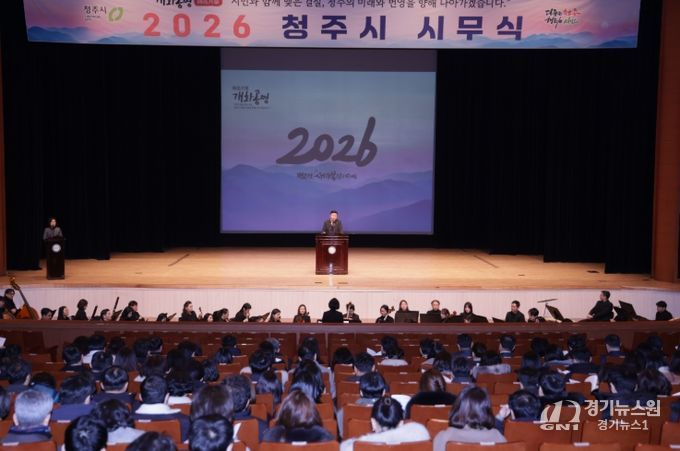 [경기뉴스원/경기뉴스1] | 청주시는 2일 청주예술의전당 대공연장에서 2026년 시무식을 개최하고 새해 시정 운영의 힘찬 출발을 알렸다.
