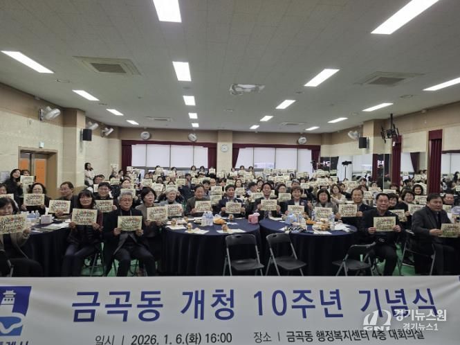 [경기뉴스원/경기뉴스1] | 2026년 개청 10주년을 맞은 권선구 금곡동은 지난 6일 지역구 의원과 주민 등 100여 명이 참석한 가운데 주민자치회 및 통장협의회와 함께 10주년 기념행사를 개최했다.