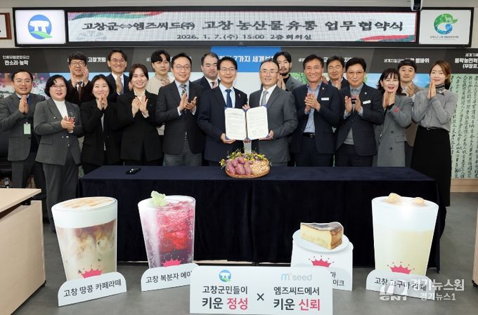 [경기뉴스원/경기뉴스1] | 고창군이 7일 군청에서 엠즈씨드(주)(대표 권익범)와 고창 농산물 유통 활성화를 위한 업무협약(MOU)을 체결하고 지역 상생을 위한 협력 모델 구축에 나섰다.