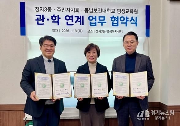 [경기뉴스원/경기뉴스1] | 수원시 장안구 정자3동 행정복지센터와 주민자치회는 지역 내 협력 기반을 구축해 주민 맞춤형 프로그램을 확대하고자 지난 8일 동남보건대학교 평생교육원과 업무협약을 체결했다.