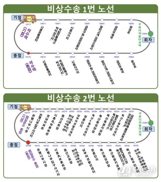 구는 2개 권역에 총 11대의 임시 무료셔틀버스를 투입한다. 오전 5시부터 밤 10시까지 오전과 오후 10~20분 배차간격으로 운행한다.