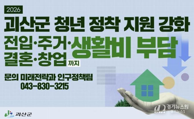 [경기뉴스원/경기뉴스1] | 충북 괴산군은 청년층의 지역 정착을 지원하기 위해 전입 지원, 주거비 지원, 결혼·신혼부부 지원, 배움·동아리·창업 지원 등 생애 전환 단계별 맞춤형 청년정책을 본격 추진한다고 14일 밝혔다.
