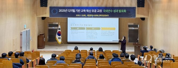 [경기뉴스원/경기뉴스1] | 대전시교육청은 1월 13일 대전교육정보원에서 연수 참여 교원과 교육청 관계자 등 30여 명이 참석한 가운데 ‘2025 디지털 기반 교육혁신 유공 교원 국외연수’ 성과 발표회를 개최했다고 밝혔다.