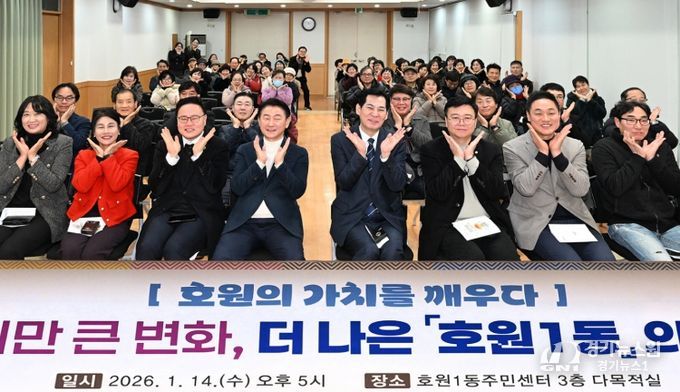이번 보고회는 ‘호원의 가치를 깨우다 – 작지만 큰 변화, 더 나은 호원1동의 미래’를 주제로, 2025년 추진 결과를 공유하고 2026년 중점 추진 사업을 주민과 함께 논의하기 위해 마련했다.