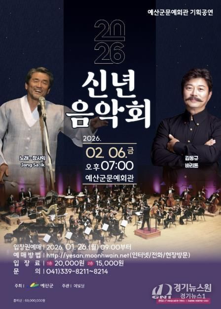 [경기뉴스원/경기뉴스1] | 예산군은 군민과 함께 희망찬 2026년 새해를 여는 ‘2026년 신년 음악회’를 오는 2월 6일 오후 7시 예산군문예회관 공연장에서 개최한다고 밝혔다.