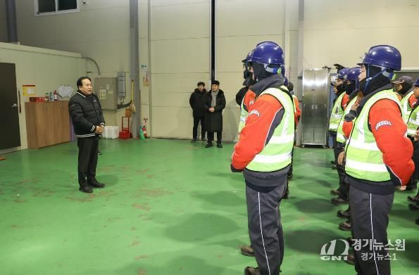 이권재 시장은 이른 아침 대행업체를 찾아 환경미화원들과 간담회를 갖고, 혹한기 작업에 따른 안전사고 예방과 건강관리의 중요성을 강조하며 현장 근무자들의 노고에 감사의 뜻을 전했다.