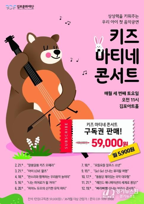 [경기뉴스원/경기뉴스1] | (재)김포문화재단은 2025년도 객석점유율 99%, 2024~2025 2년 연속 관객만족도 98점을 달성한 '키즈 마티네 콘서트'를 2026년에도 연속하여 개최한다고 밝혔다.