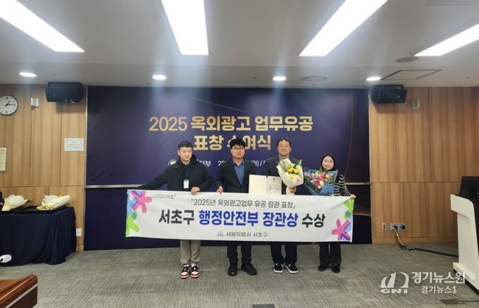 [경기뉴스원/경기뉴스1] | 서울 서초구는 지난해 12월 29일 행정안전부가 주관한 '옥외광고업무 평가'에서 행정안전부장관상을 수상했다고 밝혔다. 이번 수상은 서울시 25개 자치구 가운데 유일한 성과로, 불법광고물 정비는 물론 예방·협업·지원 정책 전반에서 뛰어난 행정 역량을 인정받은 결과로 풀이된다.