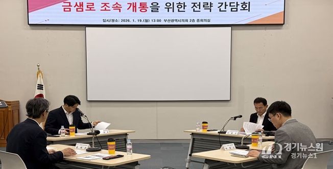 [경기뉴스원/경기뉴스1] | 부산광역시의회 이준호.이종진 의원은 1월 19일 오후 1시, 시의회 중회의실에서 '금샘로 조속 개통을 위한 전략 간담회'를 개최했다. 이번 간담회는 산성터널 접속도로 미개설 구간인 금샘로 공사의 지연 원인을 점검하고, 조속한 사업 추진을 위한 실질적인 해결 방안을 모색하기 위해 마련됐다.
