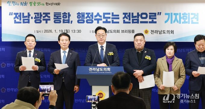 [경기뉴스원/경기뉴스1] | 나광국(더불어민주당·무안2)은 1월 19일 13시 30분 전남도의회 브리핑룸에서 기자회견을 열고, “향후 출범할 통합 지자체의 행정청사와 자치단체장의 근무지는 반드시 현재 전남도청이어야 한다”고 강력히 주장했다.