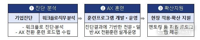 ① 1단계(진단·분석): 전문가가 기업 현장을 방문해 AI도입 준비 수준을 진단하고, 업무 프로세스별 병목 구간을 파악해 ‘AI 훈련 로드맵’을 수립한다.