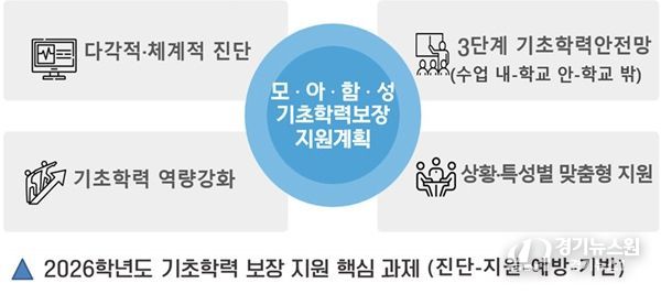 [경기뉴스원/경기뉴스1] | 대전시교육청은 모든 학생의 평등한 출발선을 보장하고 학습 결손의 심화를 예방하기 위해 ‘2026학년도 기초학력 보장 지원 계획’을 발표하고 본격적인 정책 추진에 나선다고 밝혔다. 이번 계획은‘모든 아이가 함께 성장하는 책임교육 실현’을 목표로, 수업 내·학교 안·학교 밖을 연계한 ‘3단계 기초학력 안전망’을 내실화하는데 중점을 두었다.